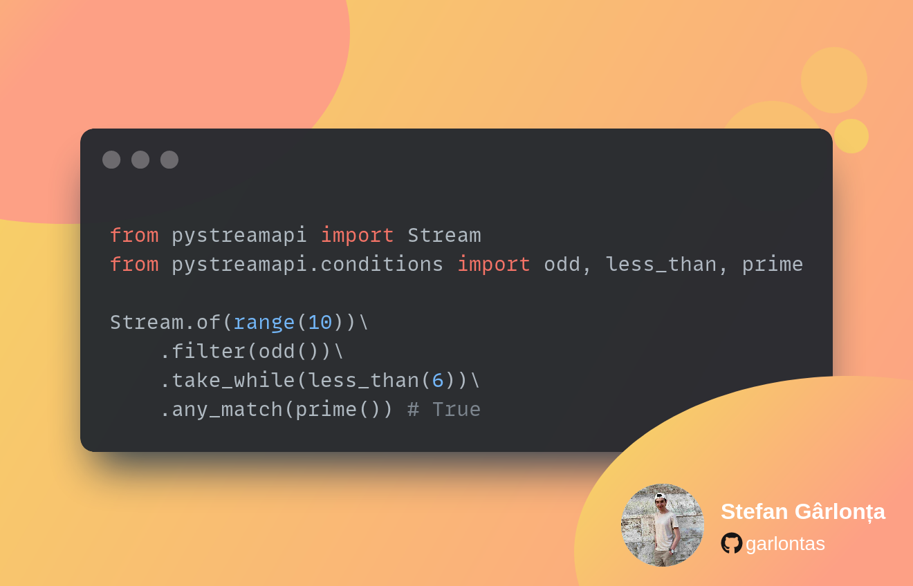 PyStreamAPI is a Python stream library that draws inspiration from the Java Stream API. Although it closely mirrors the Java API, PyStreamAPI adds some innovative features to make streams in Python even more innovative, declarative and easy to use.